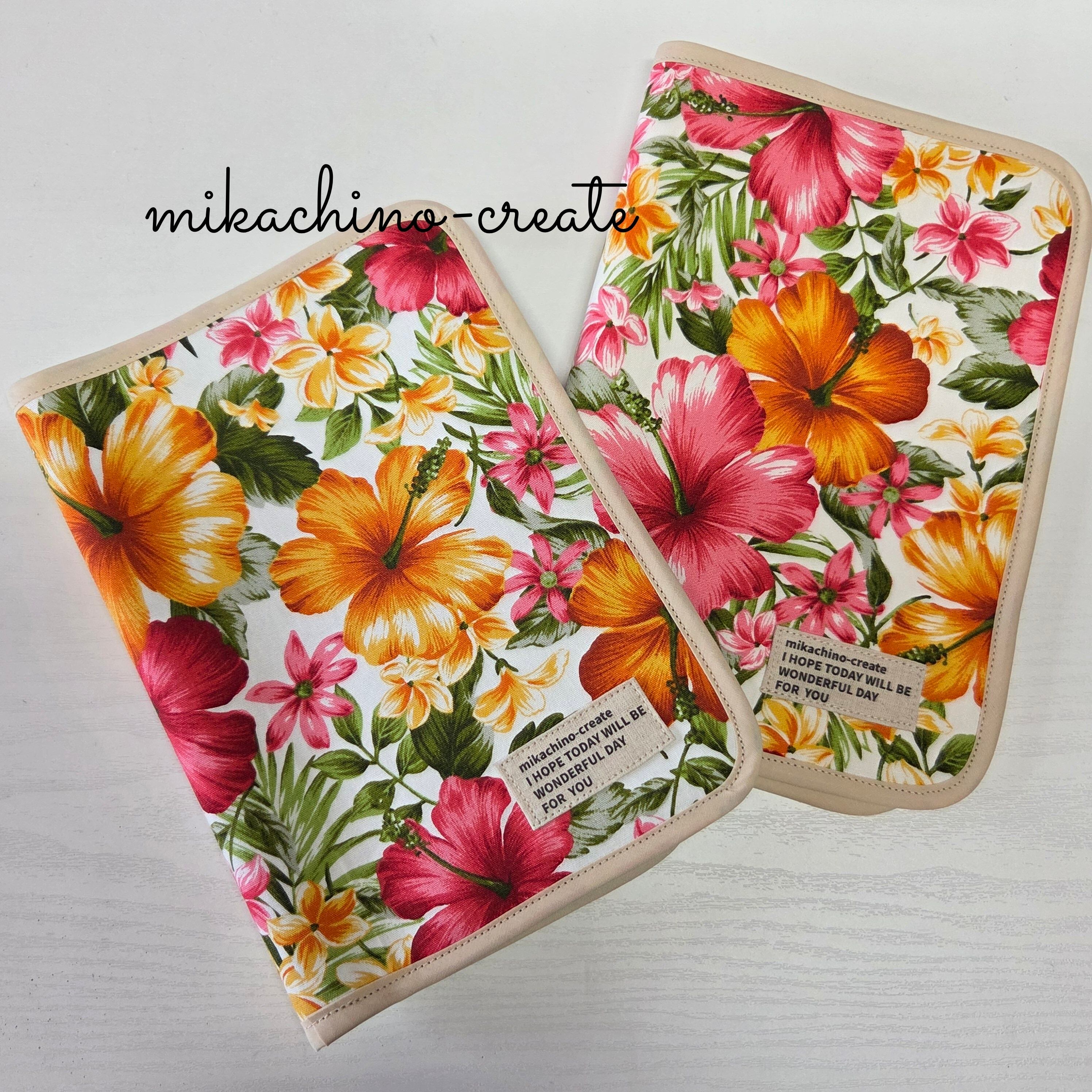車検証入れ ハイビスカス&プルメリア 白×黄 ハンドメイド